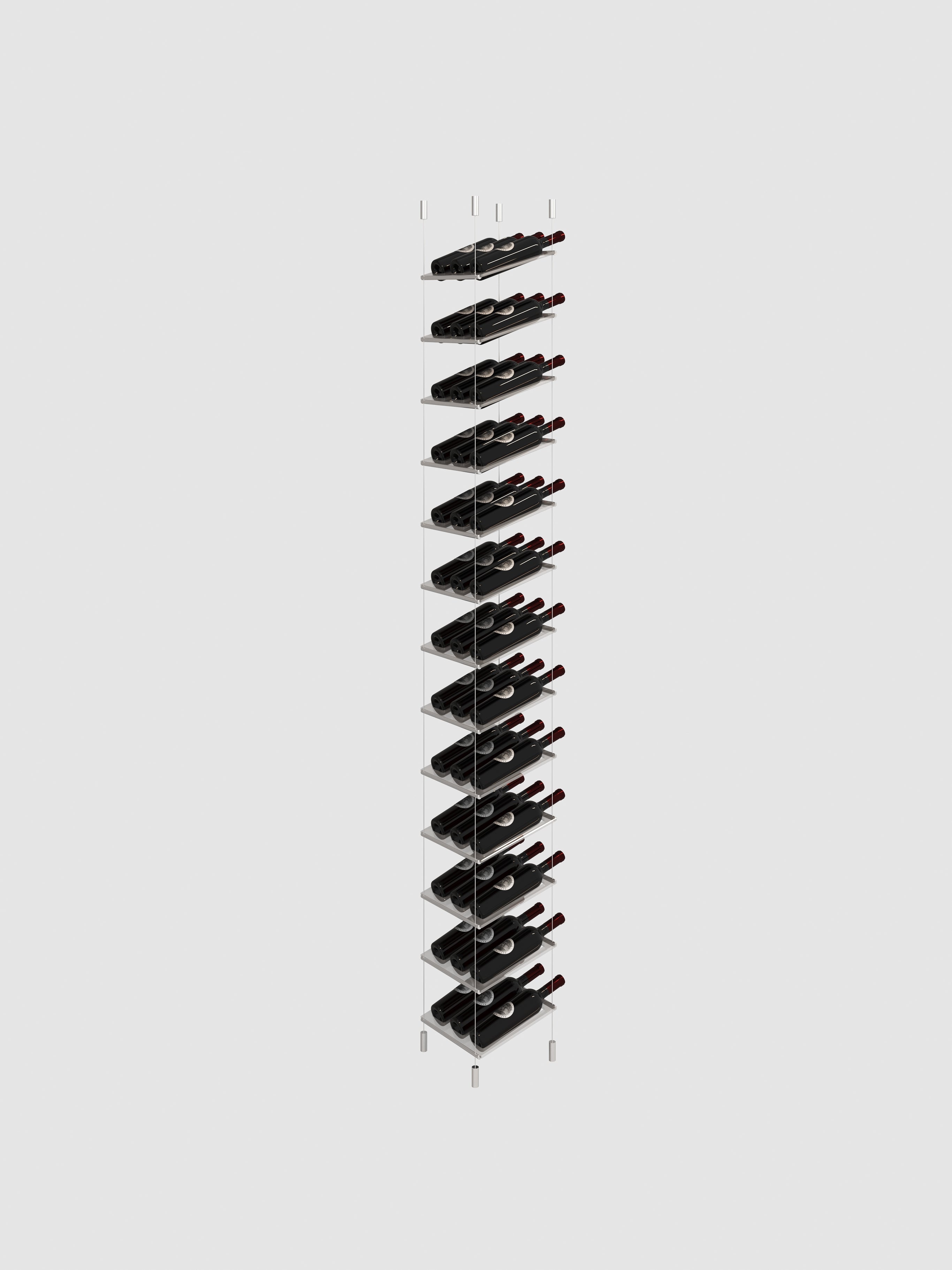 Each system is engineered with aircraft-grade stainless steel and high-tension hardware, providing exceptional load capacity and long-term stability. When installed correctly, the system easily supports full bottle loads across multiple rows.